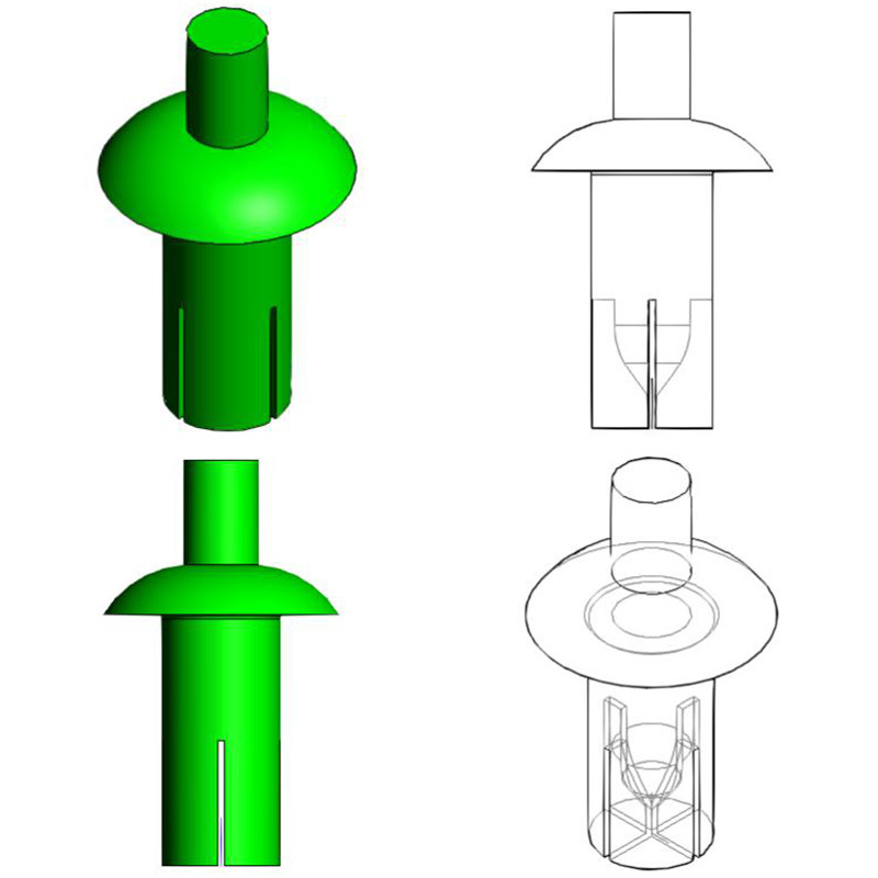 RiVet thâm nhập lõi kín có một thiết kế độc đáo, bao gồm trục lõi và tay áo - thông thường chúng có một cái đầu lớn và không rõ ràng, cung cấp một bề mặt chịu áp lực tốt. Cơ thể chính của chúng được thiết kế để mở rộng vào các lỗ khoan trước, do đó cho phép cố định chặt chẽ và an toàn. Bằng cách quan sát, người ta có thể xác định xem các bu-lông có được cài đặt chính xác không: khi một lực nhất định được áp dụng, nó sẽ bị phá vỡ sạch sẽ và gọn gàng, thể hiện vẻ ngoài gọn gàng và đẹp đẽ. Hình dạng cụ thể này cho phép nó nắm chặt và không dễ bị nới lỏng.