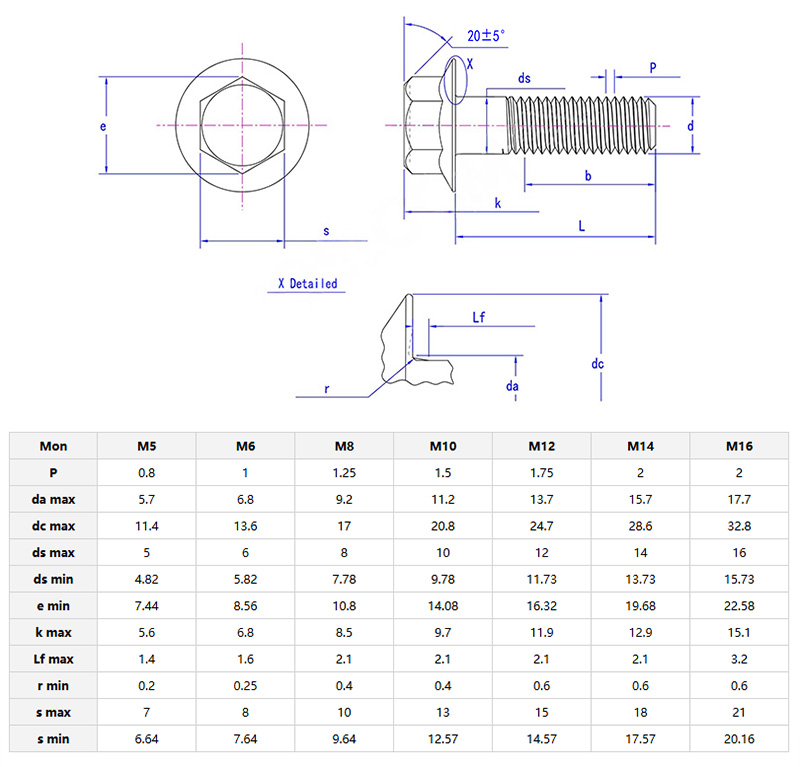 Bu lông mặt bích đầu hexalobular cấp công nghiệp